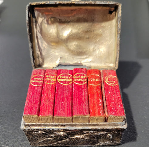 Six books in the Midget Series in Decorated Metal Casket c 1900
