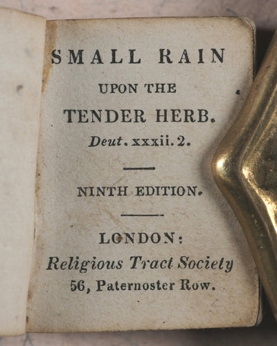 Small Rain Upon the Tender Herb Deut. xxxii. 2. Religious Tract Society. [London]. Circa 1830. 1st edition.