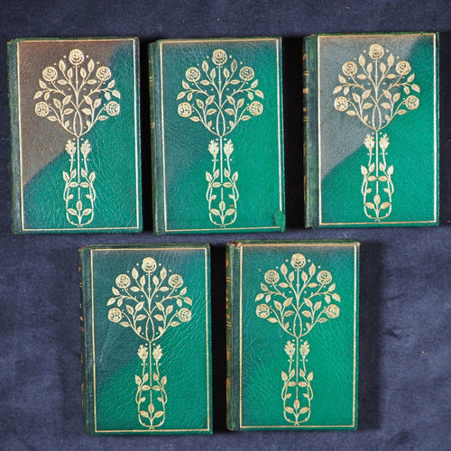 Dickens, Charles Christmas Stories. Birdsall & Sons [Northampton]. Circa 1908. Complete five volume set on original oak book display.