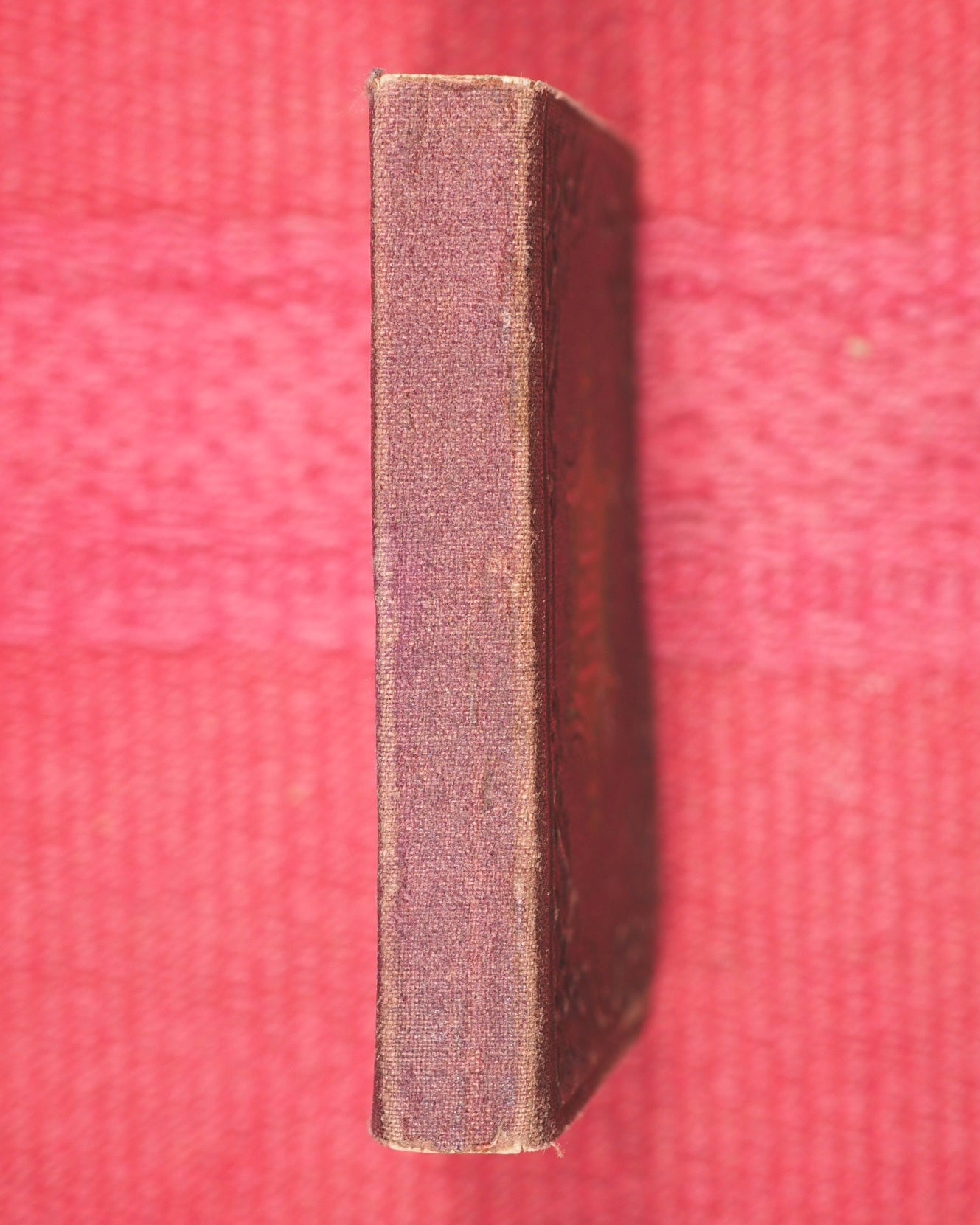Engraved frontispiece and title page, for William James Brown, Strand, London. 238 printed pages. The same imprint was also published in 1853. 67 x 90 mm. Original purple  cloth with elaborately embossed borders on covers. Upper cover with central hexagonal form gilt cartouche with title reverse blocked. Covers very lightly rubbed. Not in Bondy, Spielmann, nor Welsh. This imprint not located in WorldCat.  WorldCat locates no copies of this edition worldwide.