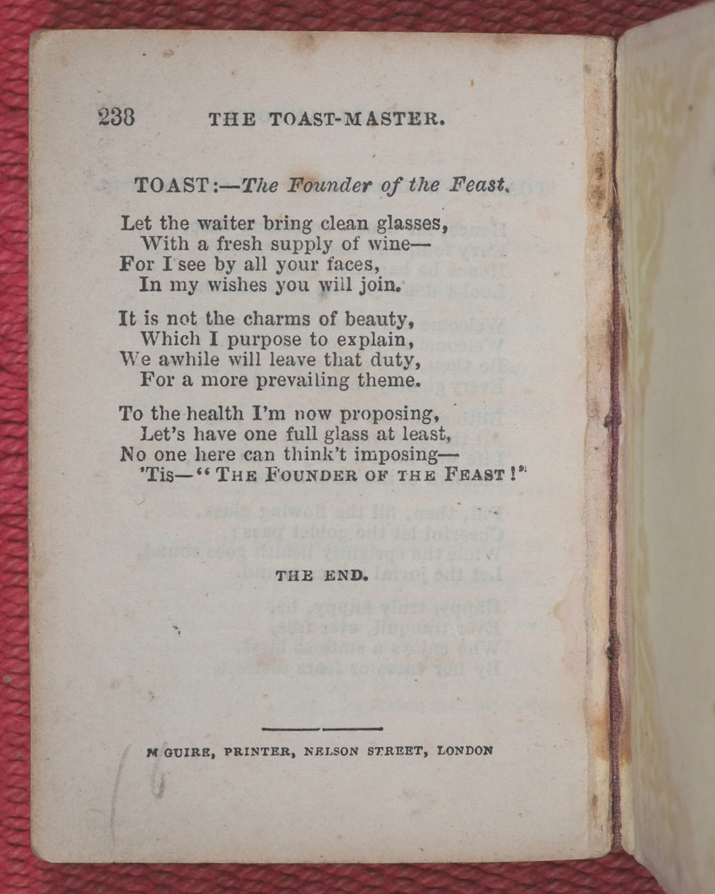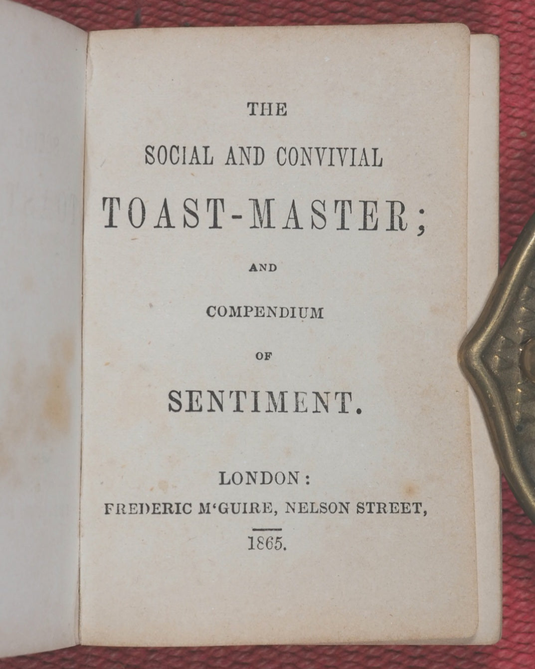 Social and Convivial Toast-Master and Compendium of Sentiment. McGuire, Frederic. Nelson Street, London. 1865.