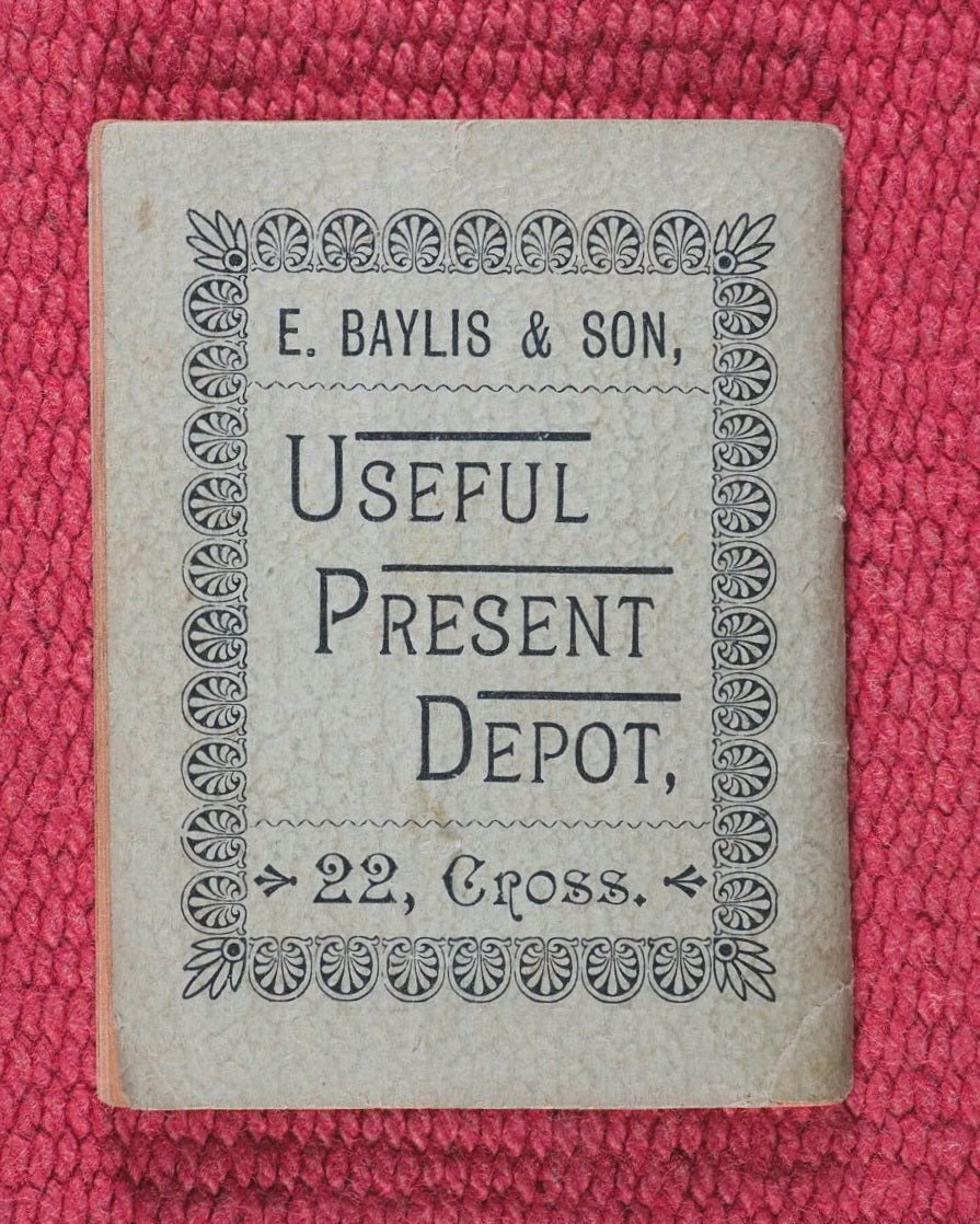 [32] unnumbered printed pages, half are publisher's adverts. Black print on orange paper. Double page engraving of Worcester cathedral in the centre. 50 x 63mm. Original staple bound card covers. Slight mark on upper cover. A very scarce and beautifully printed promotional miniature booklet of local history interest. In very good condition and an unexpected survivor. Not in WorldCat nor Bondy, Spielmann, nor Welsh. WorldCat locates no copies worldwide.