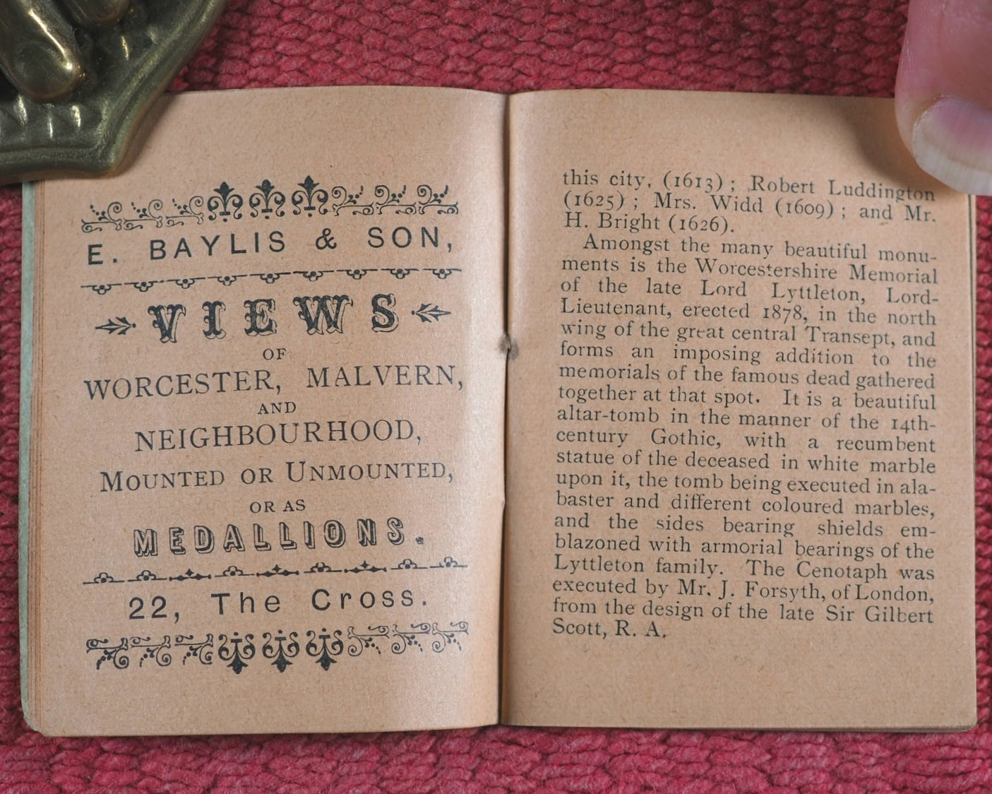![Brief Description of Worcester Cathedral. From E. Baylis & Son's Sixpenny Picturesque Guide. Bayliss, Eben.[ezer] & Son. Cross. Worcester. Circa 1911.](http://miniaturebooks.com/cdn/shop/files/P8295353_{width}x.jpg?v=1756486055)