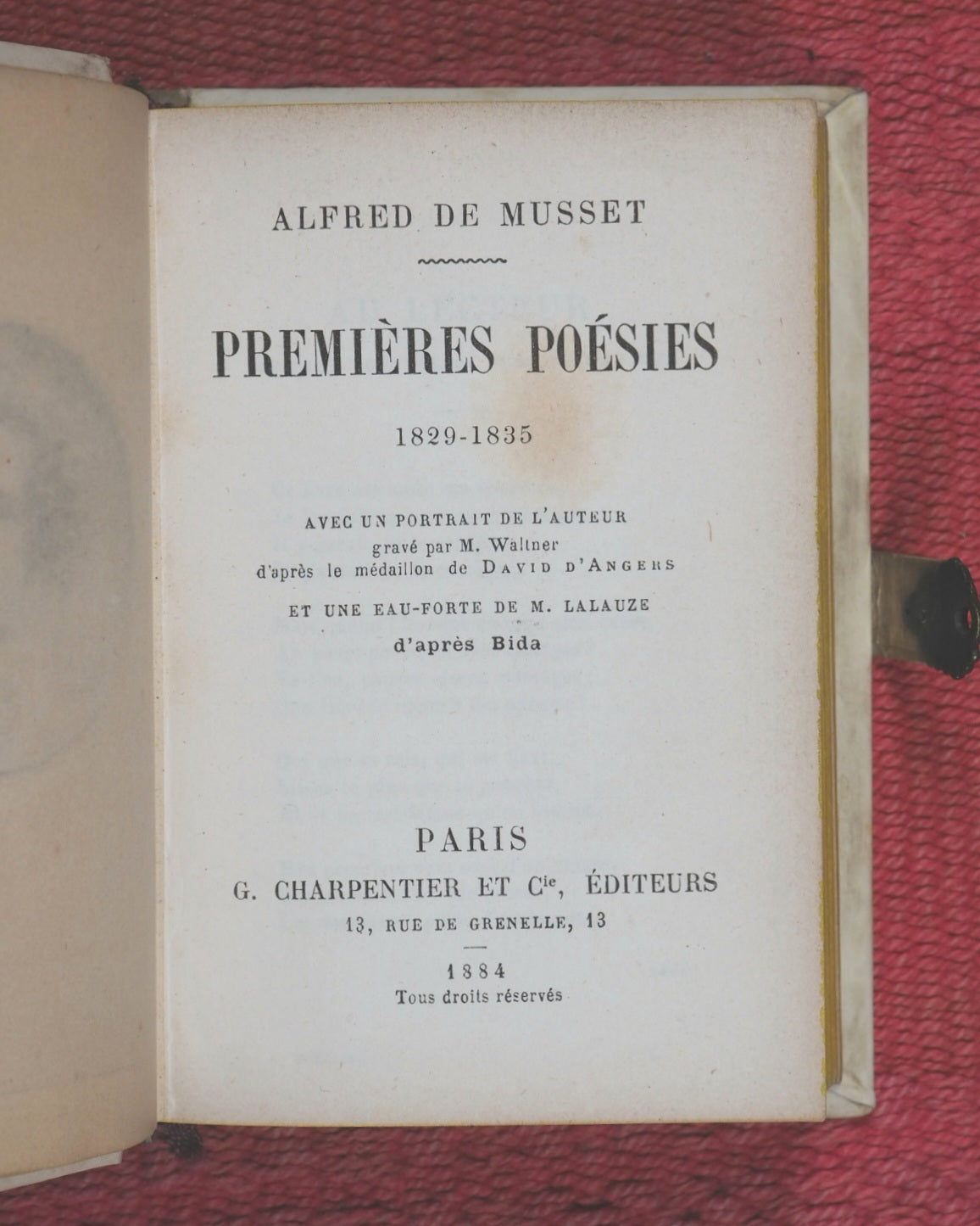 ![Load image into Gallery viewer, Musset, Alfred de. Premières Poésies 1829-1835 [with] Poésies Nouvelles 1836-1852. Charpentier et Co. 13 and 11 Rue de Grenelle. Paris. 1884 and 1886.](http://miniaturebooks.com/cdn/shop/files/PC135637_110x110@2x.jpg?v=1765634925)