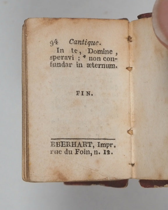 94 printed pages in French. Five fine copper engraved plates. Printed by Eberhart, rue du Foin, no.12. All edges faded gilt. Complete with original matching slipcase (worn at corners and missing bottom rectangular section). 32 x 45 mm. Original red cartonnage binding; covers with gilt tulip flowers and leaves within gilt miterd panels. Rubbed and lacking spine. Bondy, 77. Spielmann, 404. Welsh, 5605.